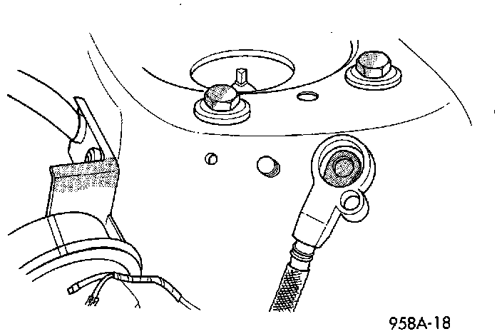 1. Disconnect battery negative cable from remote negative terminal on shock tower.