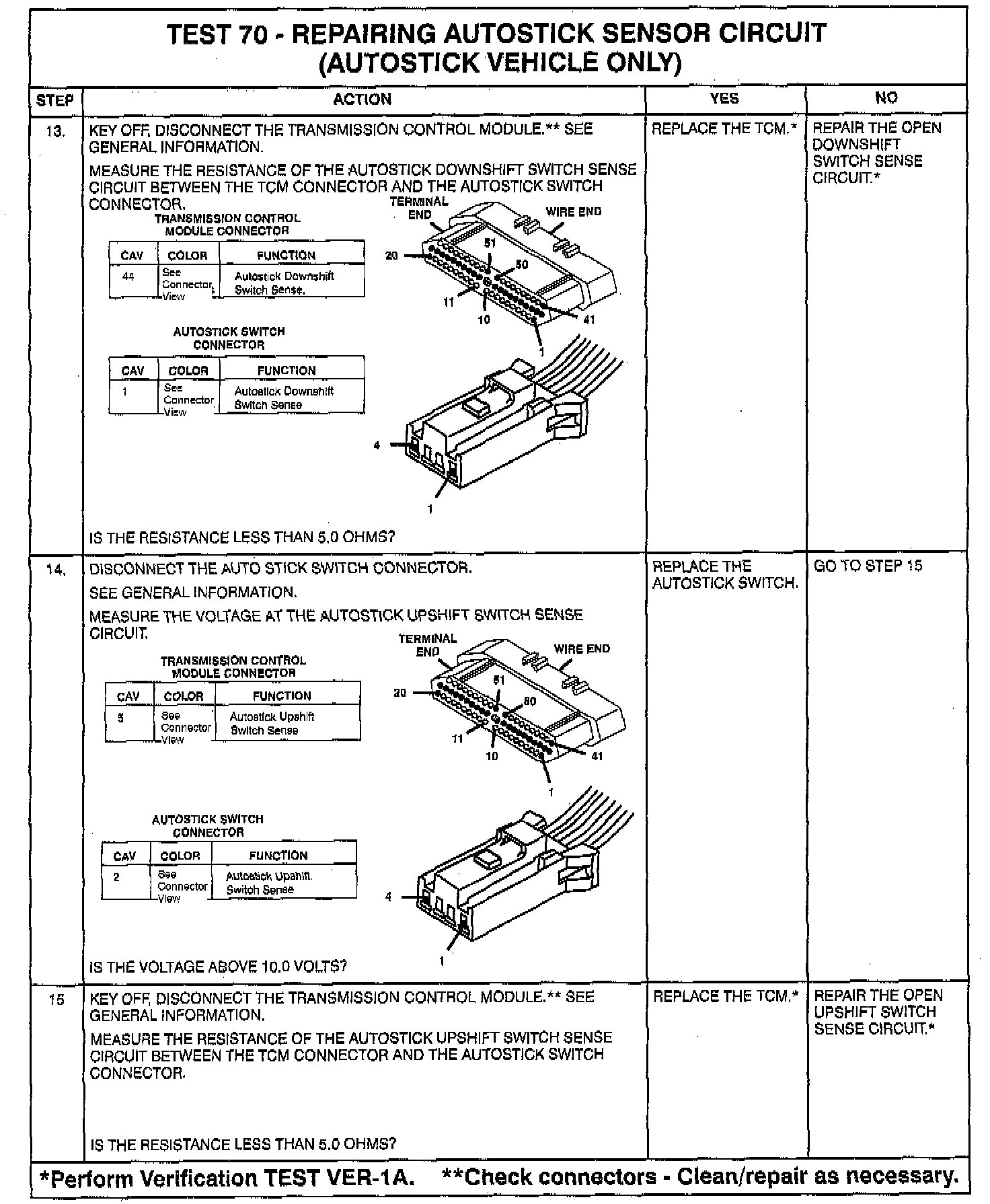 In the AutoStick Mode (manual shift mode), upshifts and downshifts are actuated manually. Shift- requests are detected by monitoring-the-upshift and downshift switches. The Transmission Control Module (TCM) monitors the below set conditions. A set condition will be tolerated for up to 15 seconds before setting a code.
