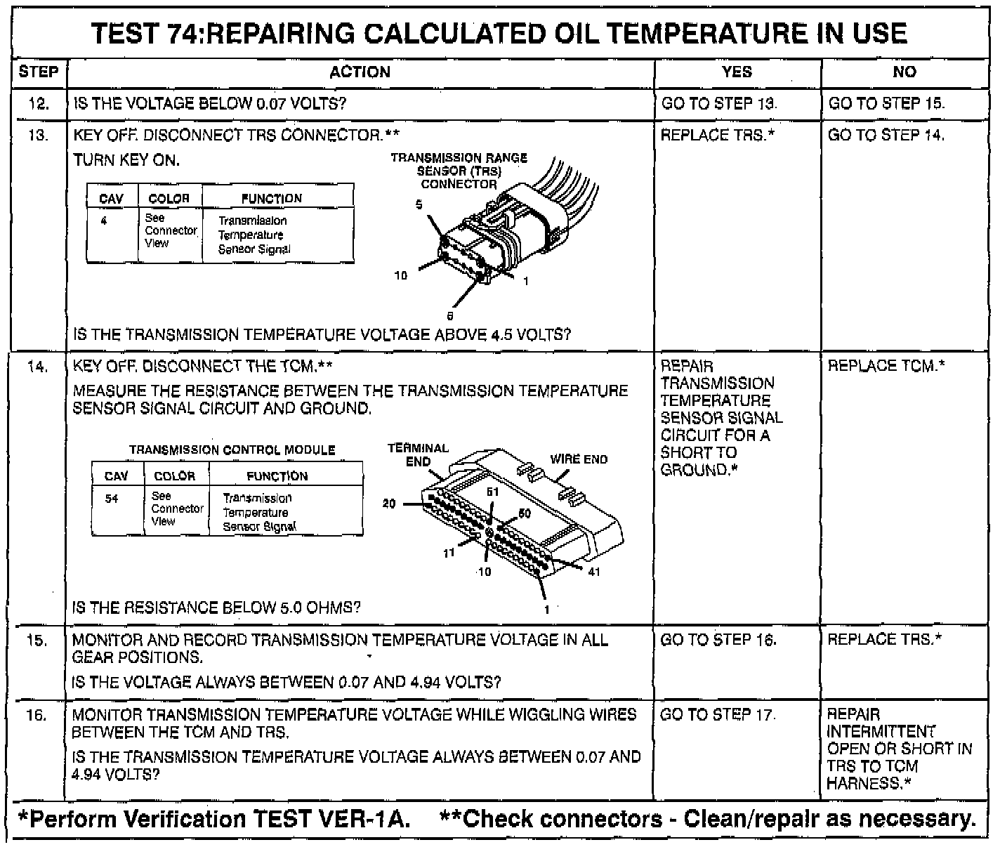 - Wiring or connector problems in the transmission temperature sensor signal circuit,