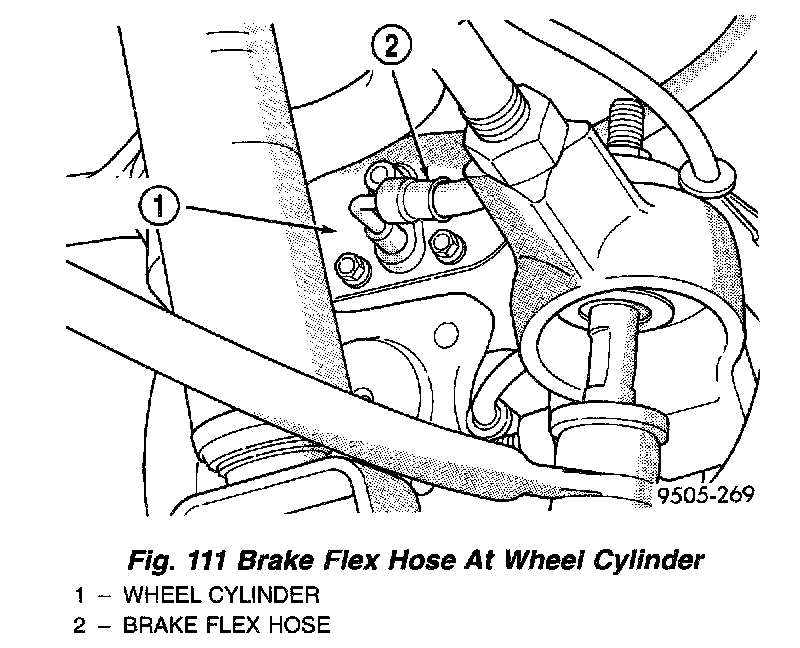 6. Disconnect rear brake flex hose tube from wheel cylinder and remove the brake flex hose bracket from the brake support plate.