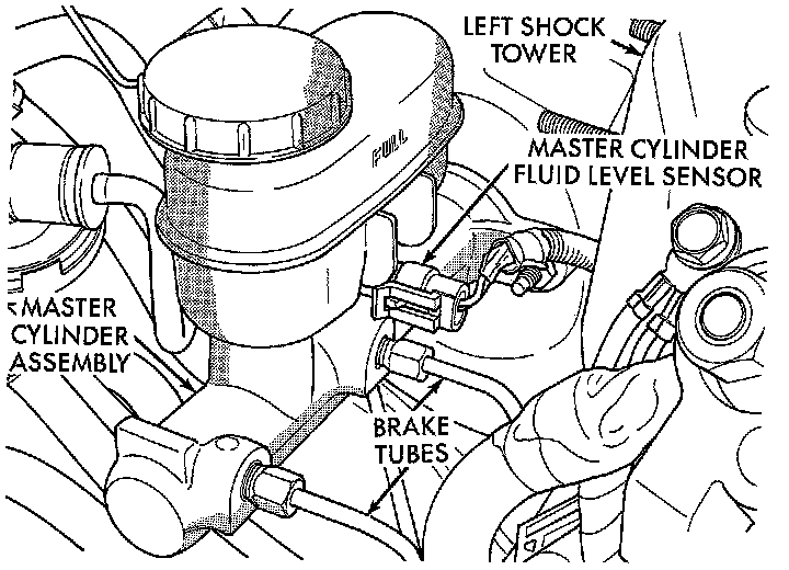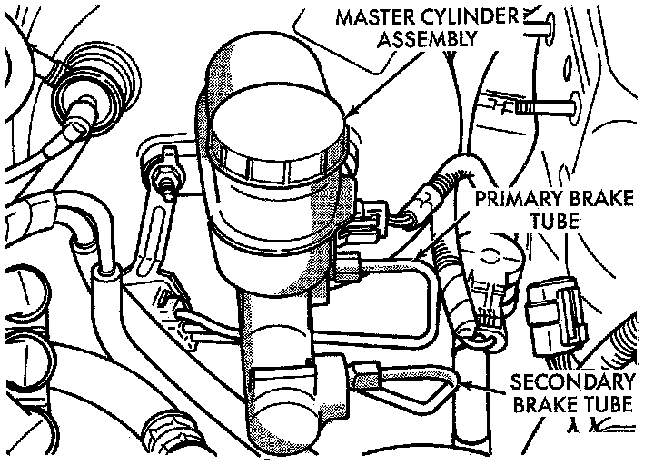 8. Remove the primary and secondary brake tubes from the Master Cylinder Assembly.