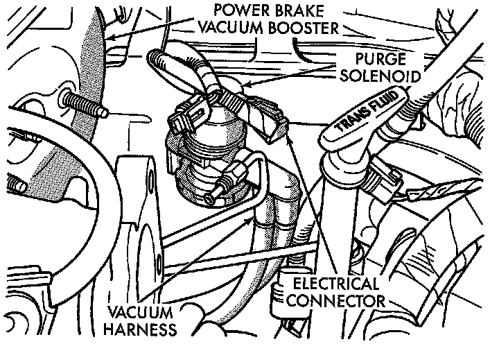13. Remove the vacuum hoses from the check valve located on the power brake vacuum booster.