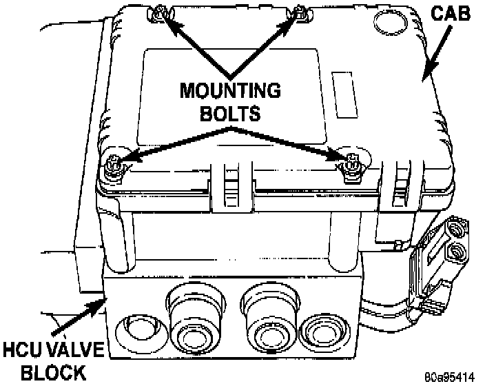 2. Install the 4 bolts mounting the CAB to the HCU. Tighten the CAB mounting bolts to a torque of 2 Nm (17 inch lbs.).