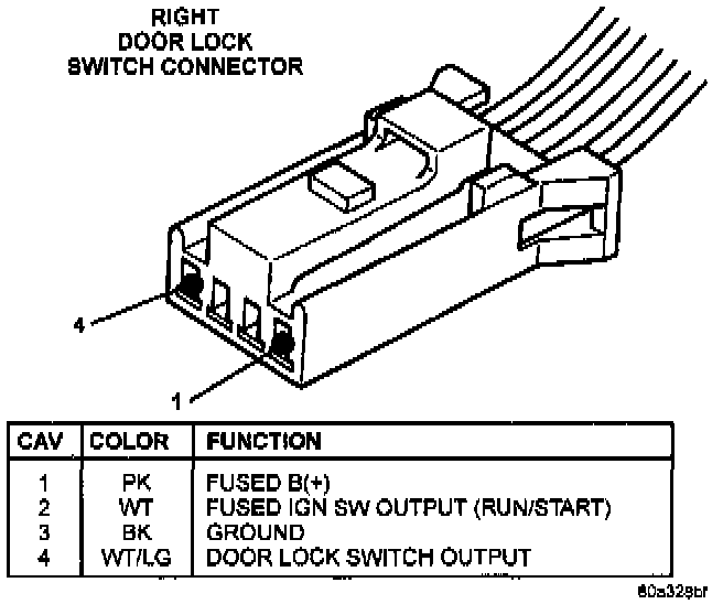 Power Door Lock Switch Connector: