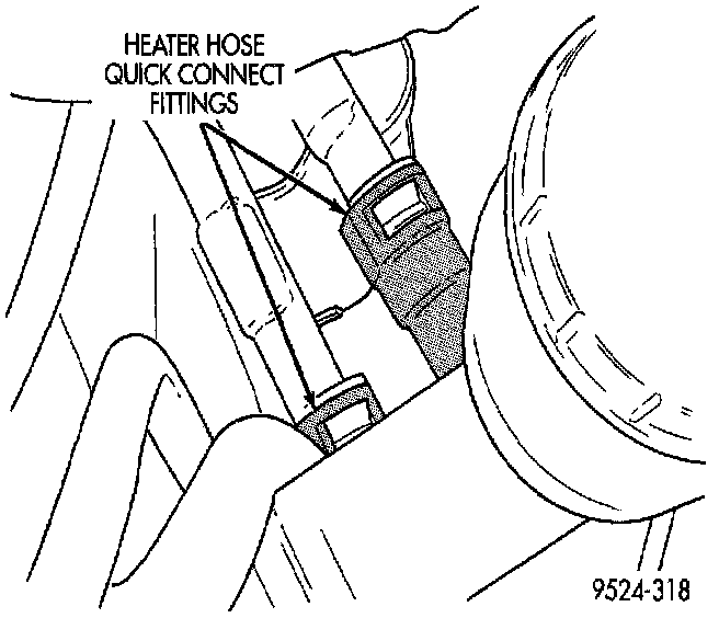 The heater hoses are preformed hoses with quick connect fittings at the engine. These hoses are not serviceable and must be replaced using OEM parts. The hoses are attached at the heater core using spring tension clamps.
