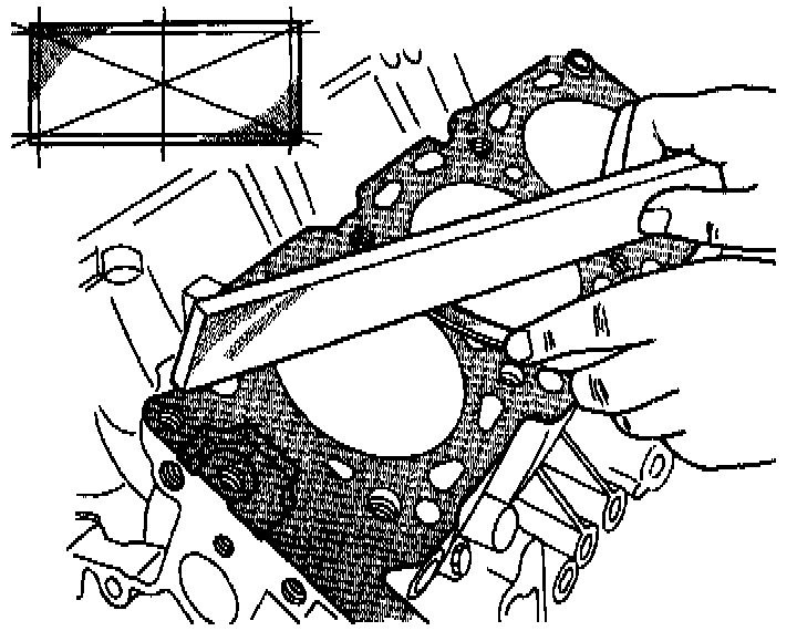 1. Clean cylinder block and check top surface for distortion with a straight edge and thickness gauge.