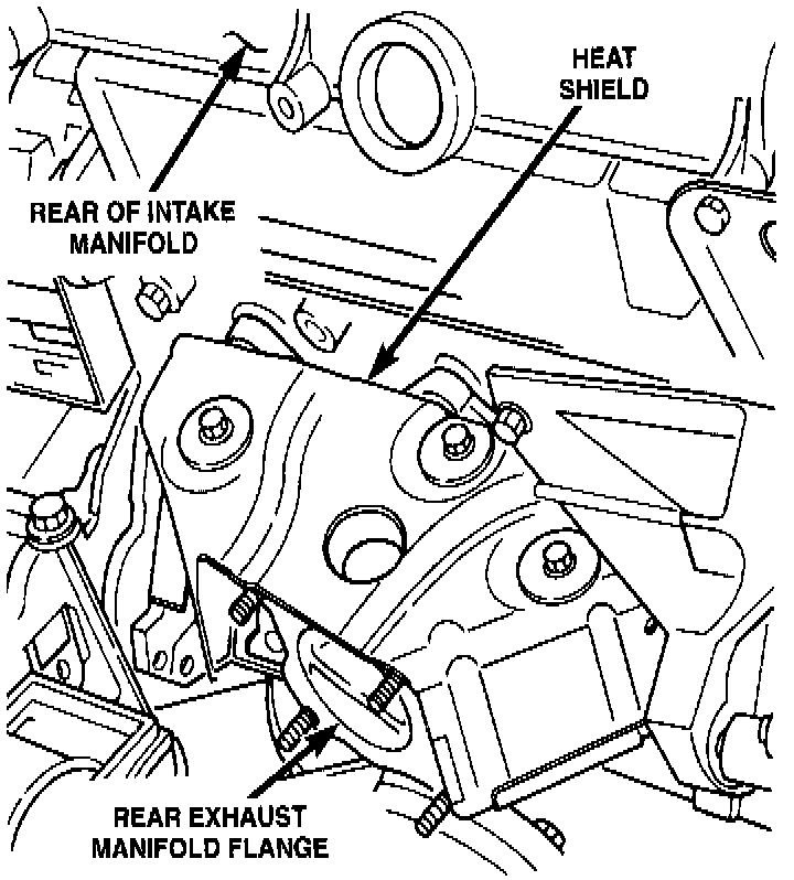 8. Install front manifold heat shield and tighten attaching screws to 15 Nm (130 inch lbs.).