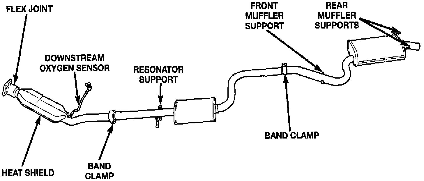 NOTE: Band clamps are spot welded to exhaust system. If a band clamp must be replaced, the spot weld must be ground off the exhaust pipe.