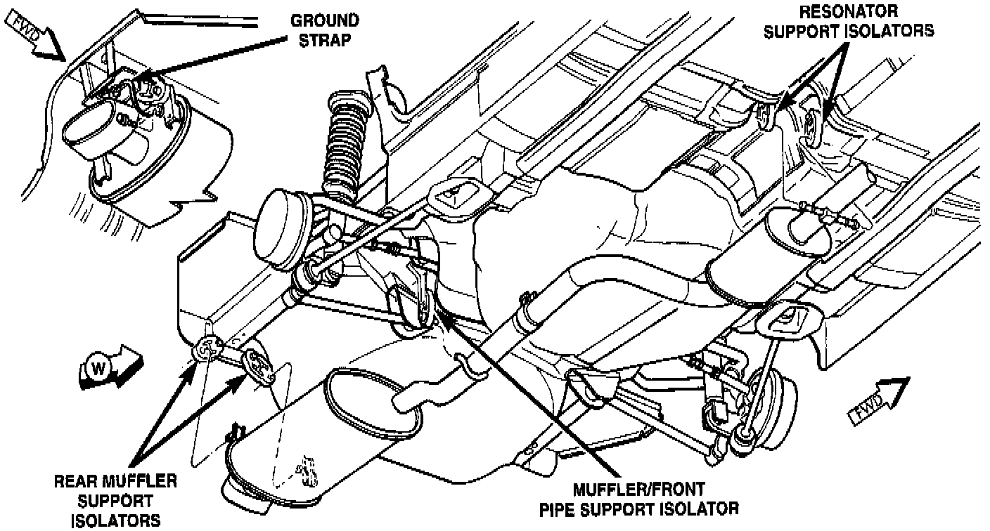 3. Install the muffler to resonator pipe. Attach isolators to the supports on the underbody.