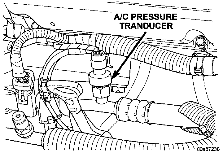 1. Disconnect the wire harness connector from the A/C pressure transducer.