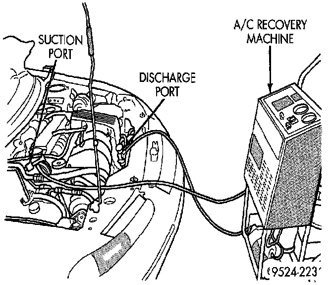 1. Connect a suitable charging station, refrigerant recovery machine, and a manifold gauge set with vacuum pump.