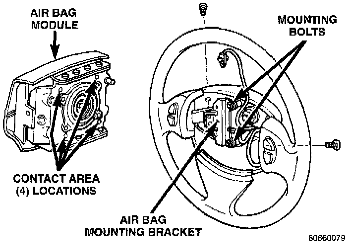 3. If bracket needs to be replaced, the steering wheel must be replaced. If contact ring is bad the Driver Airbag Module must be replaced.
