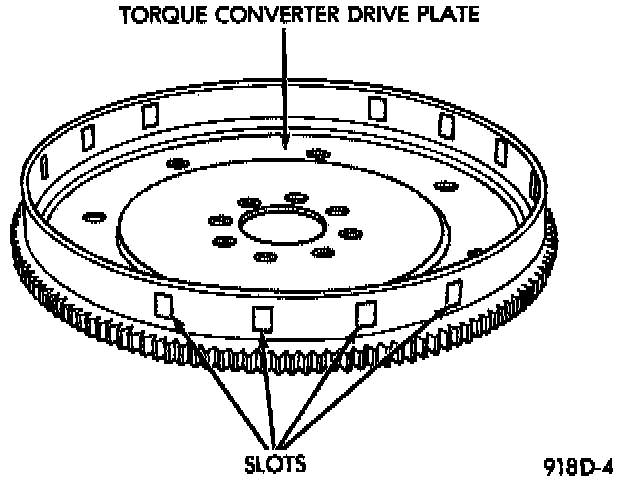 The crankshaft position sensor Fig. 3 detects slots cut into the transmission driveplate extension.