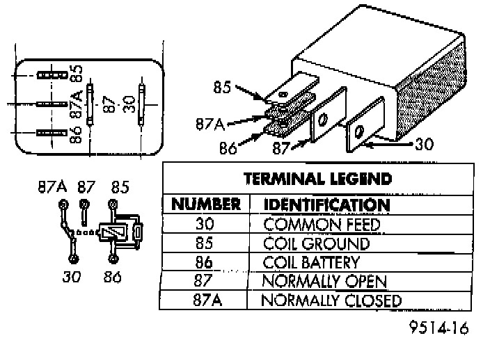 Terminal 87A: When PCM de-energizes the ASD and fuel pump relays, terminal number 87A connects to terminal 30.