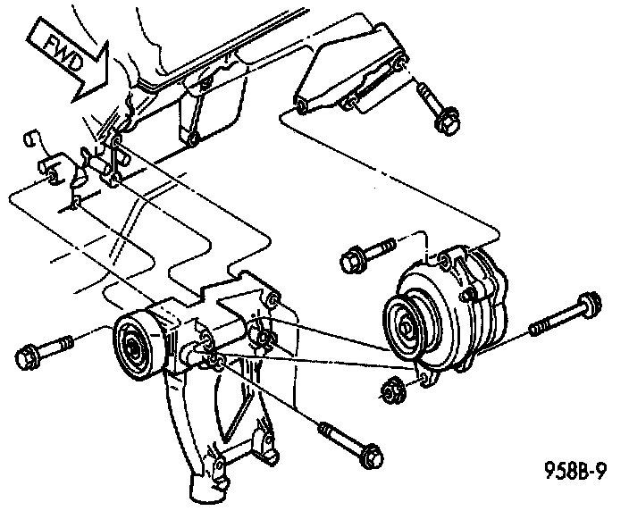 6. Loosen adjusting bolt on idler to allow removal of the generator drive belt.