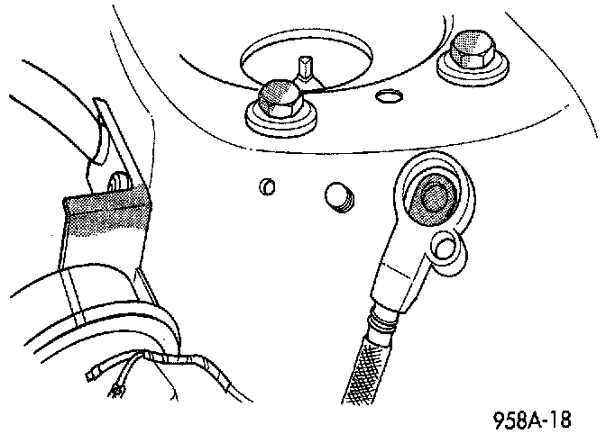 1. Disconnect battery negative cable from remote negative terminal on shock tower.