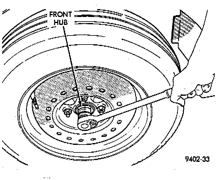 2. Loosen hub nut while vehicle is on the floor with the brakes applied. The hub and driveshaft are splined together through the knuckle (bearing) and retained by the hub nut.