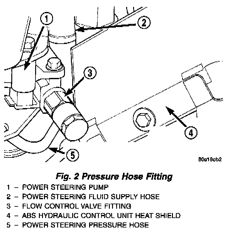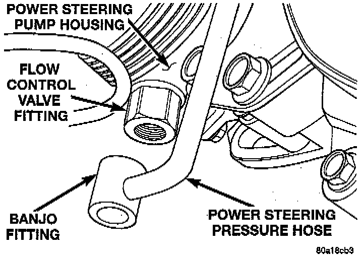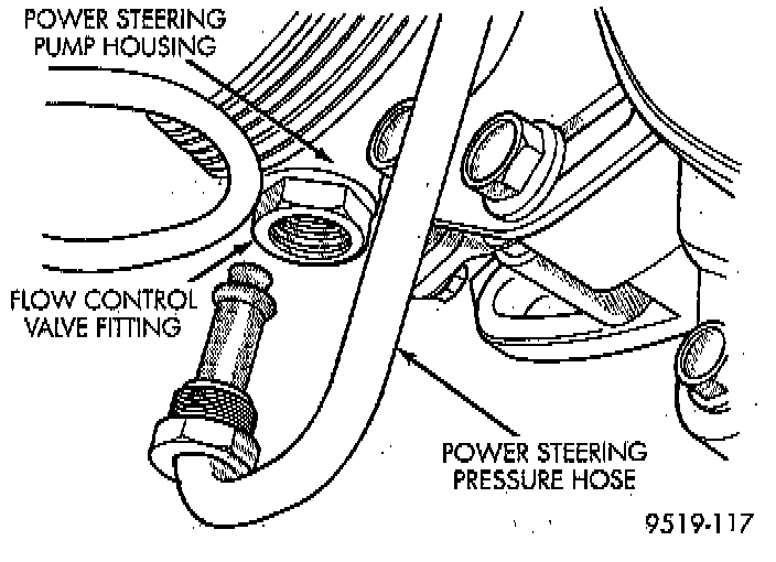 1. Remove the power steering fluid pressure hose from power steering pump pressure fitting.