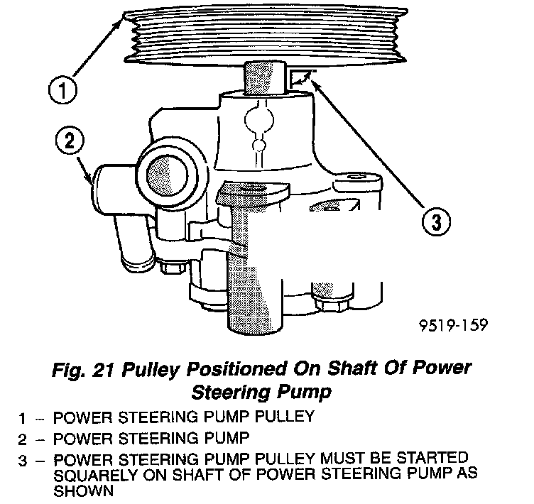 2. Place power steering pump pulley squarely on end of power steering pump shaft.