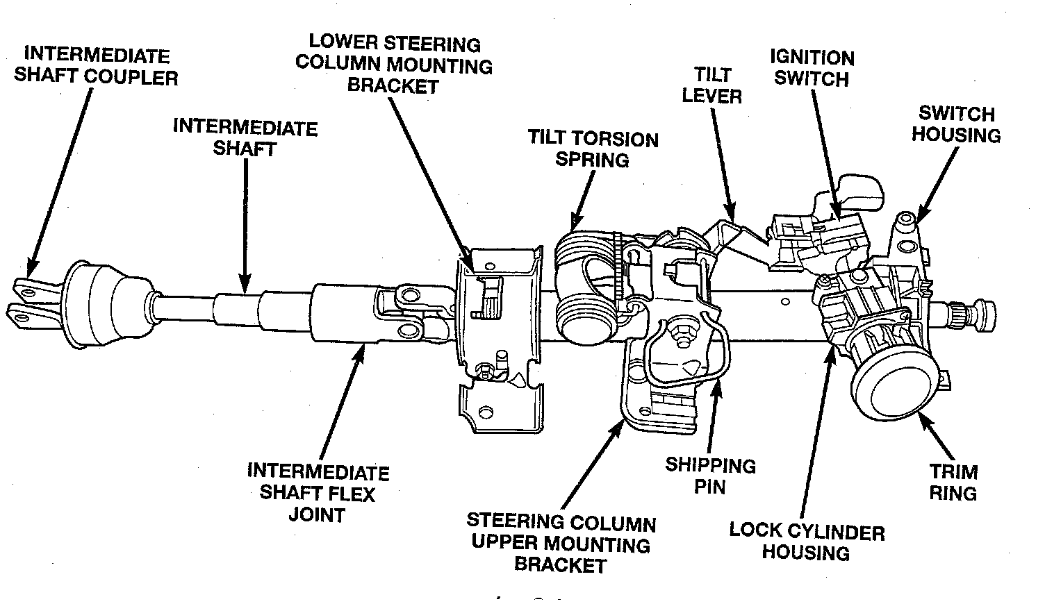 The steering column assembly has been designed to be serviced only as a complete assembly if a component of the steering column is defective. The replaceable components of the steering column assembly, are the key cylinder, ignition switch, multifunction switch, clock spring, speed control switches, halo lamp, trim shrouds, driver air bag and steering wheel. These replaceable components of the steering column, can be serviced without requiring removal of the steering column from the vehicle.