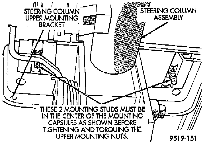 CAUTION: Be sure drill bits are removed from steering column upper mounting bracket.