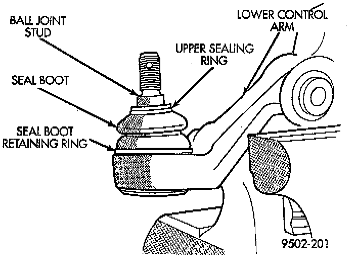 - Under no circumstances can a lower ball joint seal boot be replaced if it is determined that the vehicle had been driven with the seal boot damaged. If the vehicle has been driven with a damaged seal boot contamination of the ball joint has occurred. When contamination of the ball joint has occurred the lower control arm must be replaced. This is to ensure excessive wear of the ball joint does not occur from the contamination present in the ball joint.
