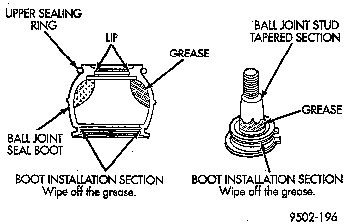 - The procedure below must be carefully followed when replacing the ball joint seal in the event it is damaged while servicing a vehicle.