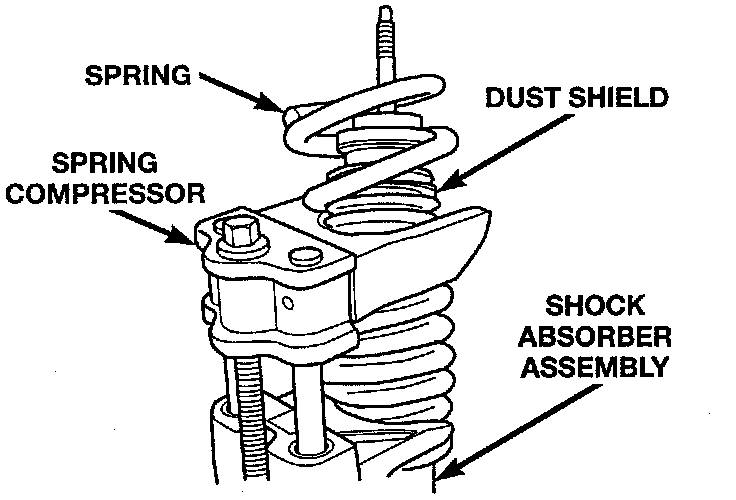 14. Relieve all tension from spring compressor. After all spring tension has been remove from the spring compressor, remove it from the shock absorber assembly.
