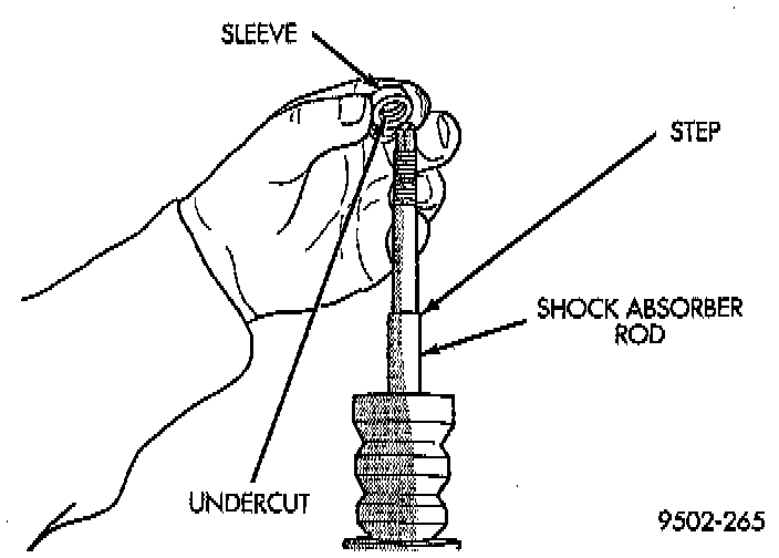 5. Install the sleeve, undercut side facing down, on the rod of the shock absorber assembly. Be sure sleeve is positioned squarely on step of shock absorber rod.