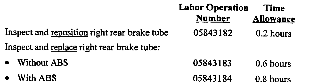 Only those vehicles that have damaged brake tubes, as determined by the inspection in Section "A", require replacement. Very few vehicles are expected to require brake tube replacement.