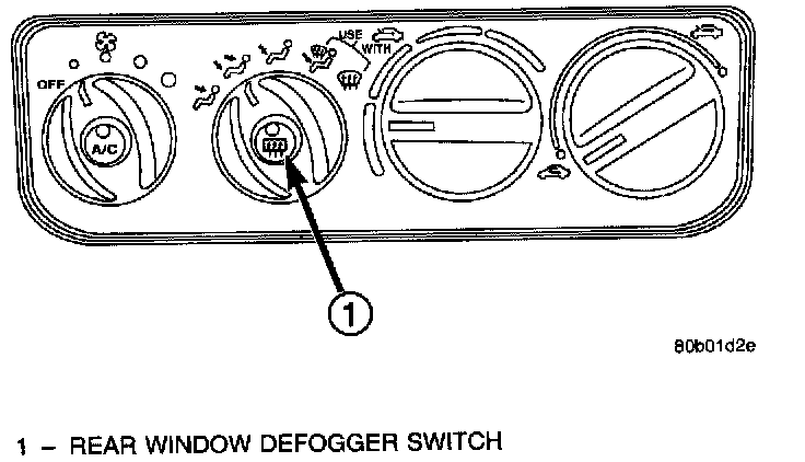 When the button is depress to the ON position, current is directed to the rear defogger grid lines. A yellow indicator within the center of the button will illuminate while the defogger is ON. The heated grid lines will heat the rear glass and clear the window surface of fog or frost.