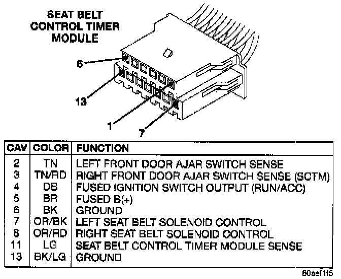 Seat Belt Control Timer Module Connector: