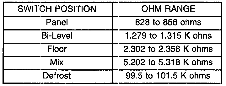 2. Using a ohmmeter, check leads between Pins 5 and 8 of the 8-way connector. Depress the rear window defogger button and the resistance reading should be 500 to 520 ohms. If not OK, replace HVAC. If OK, check: