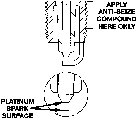 NOTE: Anti-seize compound is electrically conductive and can cause engine misfires if not applied correctly. It is extremely important that the antiseize compound doesn't make contact with the spark plug electrodes or ceramic insulator.