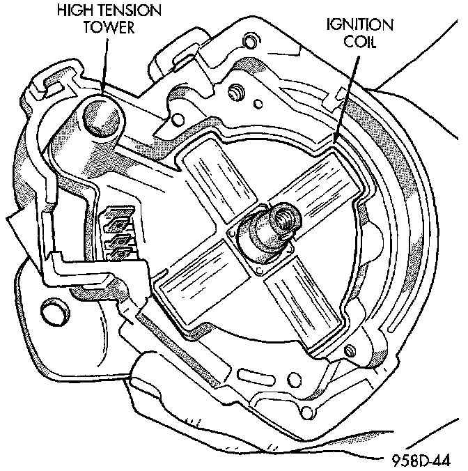Check the spark plug cable connections for good contact at the coil and distributor cap towers and at the spark plugs. Terminals should be fully seated. The nipples and spark plug covers should be in good condition. Nipples should fit tightly on the coil and distributor cap towers and spark plug cover should fit tight around spark plug insulators. Loose cable connections can cause ignition malfunctions by permitting water to enter the towers, corroding, and increasing resistance. To maintain proper sealing at the terminal connections, the connections should not be broken unless testing indicates high resistance, an open circuit or other damage.