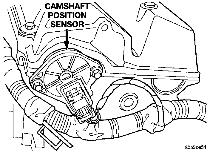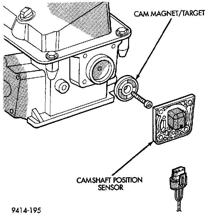 The camshaft position sensor is mounted to the rear of the cylinder head. The sensor also acts as a thrust plate to control camshaft end play.