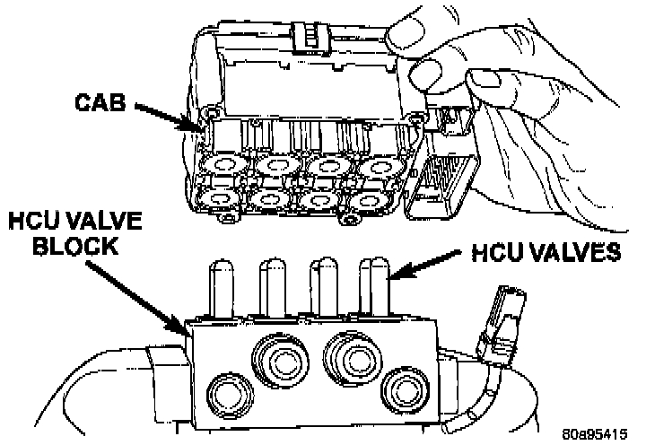 REMOVENOTE: To replace the Controller Antilock Brakes (CAB) on this vehicle, the Integrated Control Unit (ICU) and CAB need to be removed from the vehicle as a unit. The CAB can then be separated from the Hydraulic Control Unit (HCU). Do not attempt to replace the CAB with the ICU mounted in the vehicle.