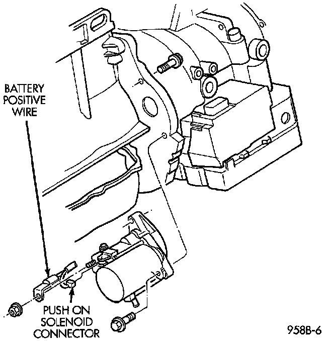 7. Connect battery positive cable to solenoid post.