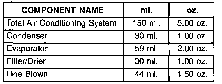 A/C Component Refrigerant Oil Capacities:
