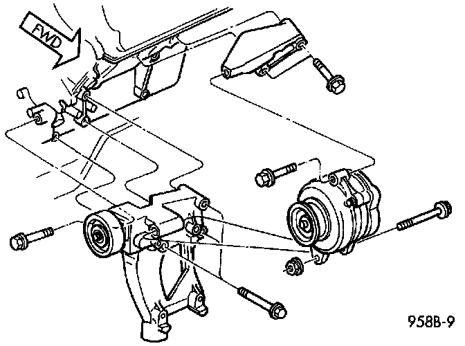 6. Loosen adjusting bolt on idler to allow removal of the generator drive belt.