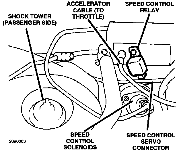 Shock Tower Accelerator Cable(to Throttle), Speed Control Relay, Speed Control Solenoids, Speed Control Servo Connector: