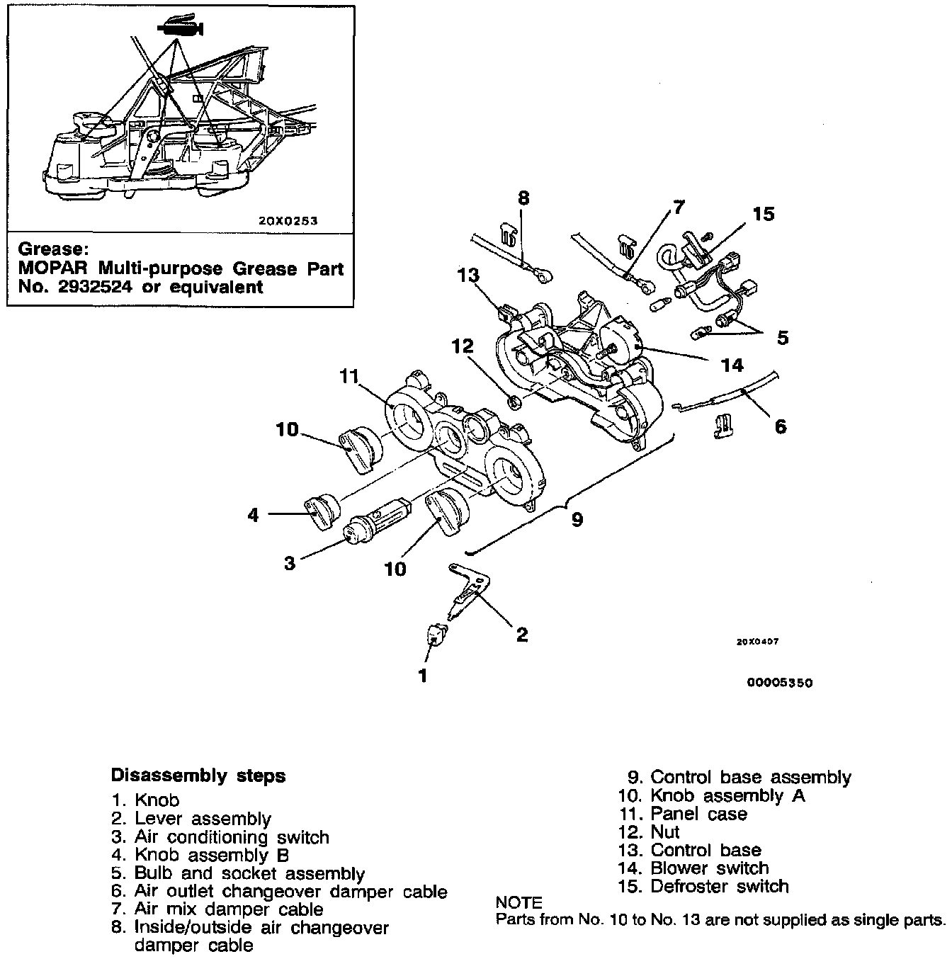 Air Outlet Changeover Damper Cable/Air Mixing Damper Cable/Inside/Outside Air Changeover Damper Cable Removal