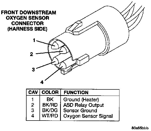 Front Downstream Oxygen Sensor Connector (Harness Side):