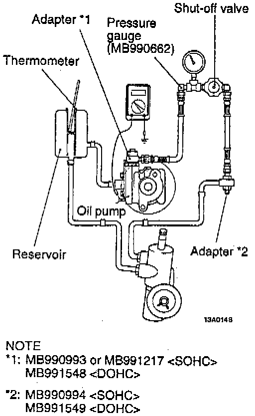 1. Disconnect the pressure hose from the oil pump, and then connect the special tools.