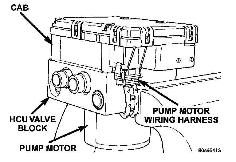 2. Disconnect the pump/motor wiring harness from the CAB.