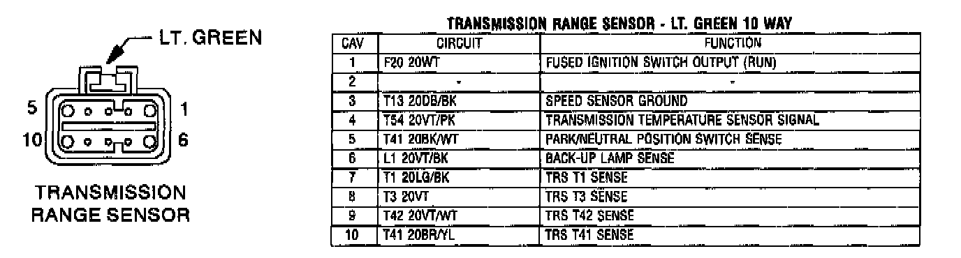 Transmission Range Sensor - Lt. Green 10 Way: