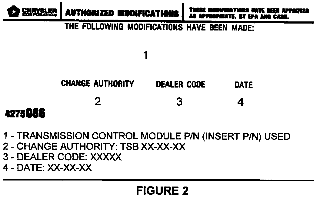 7. Type the necessary information on the "Authorized Software Update Label" P/N 04669020 (Figure 1). Attach the label to the PCM and cover the label with the clear plastic overlay.