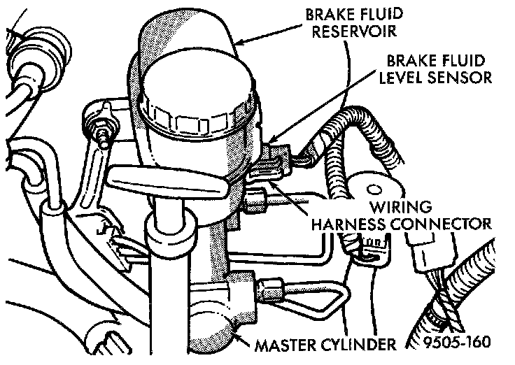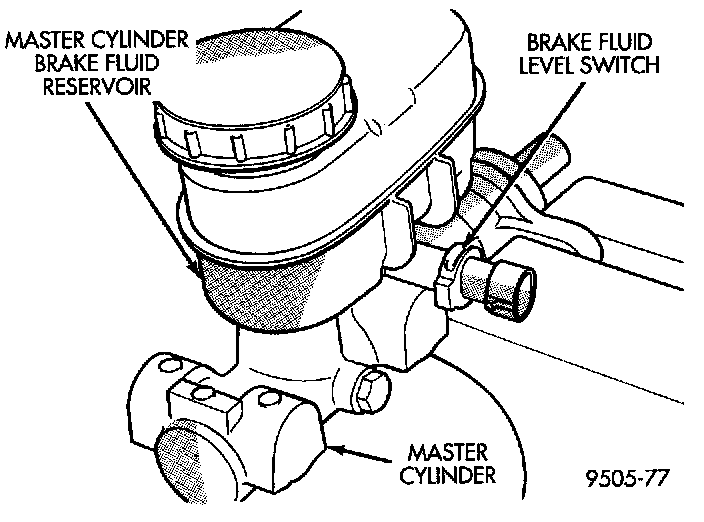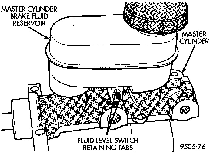 BRAKE FLUID LEVEL SWITCHThe master cylinder or brake fluid reservoir does not have to be removed from the vehicle for replacement of the brake fluid level sensor.