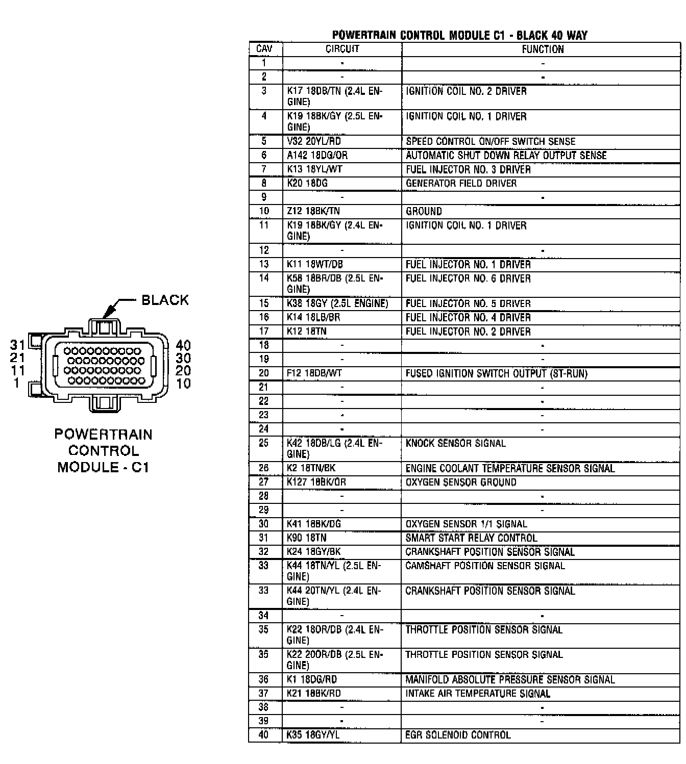 Powertrain Control Module C1 - Black 40 Way: