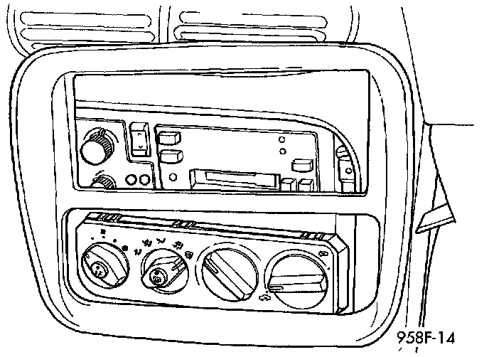 2. Remove center bezel by pulling rearward to disengage four clips and remove attaching screws from cubby bin.